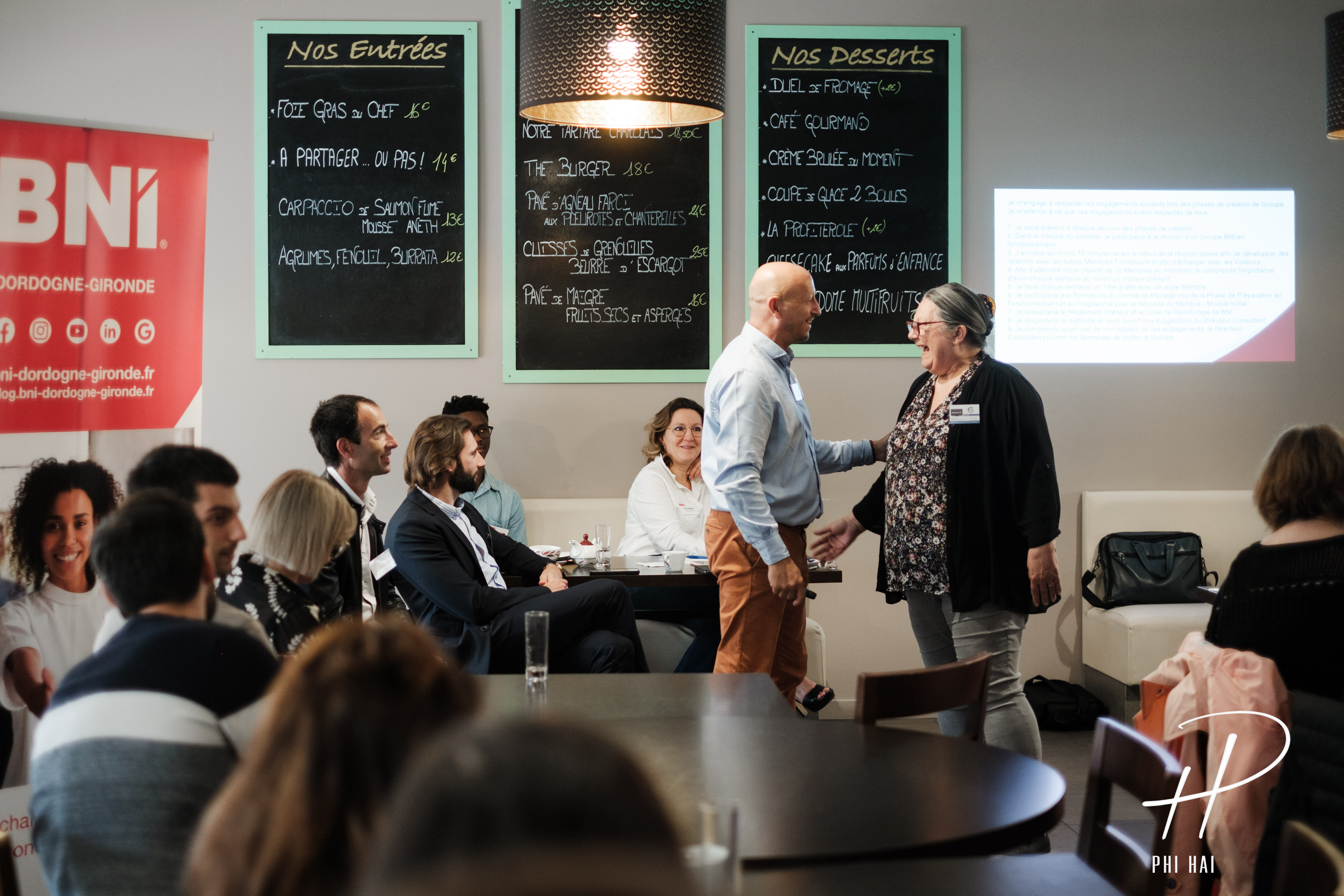 Notre groupe, qui compte une trentaine de professionnels ayant réservé l'exclusivité de leur métier, se réunit chaque mardi matin, de 7 h à 9 h, à Artigues-près-Bordeaux.